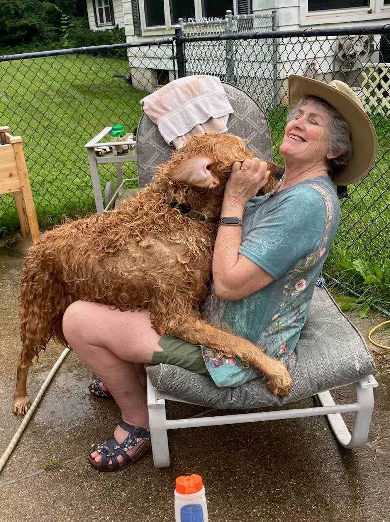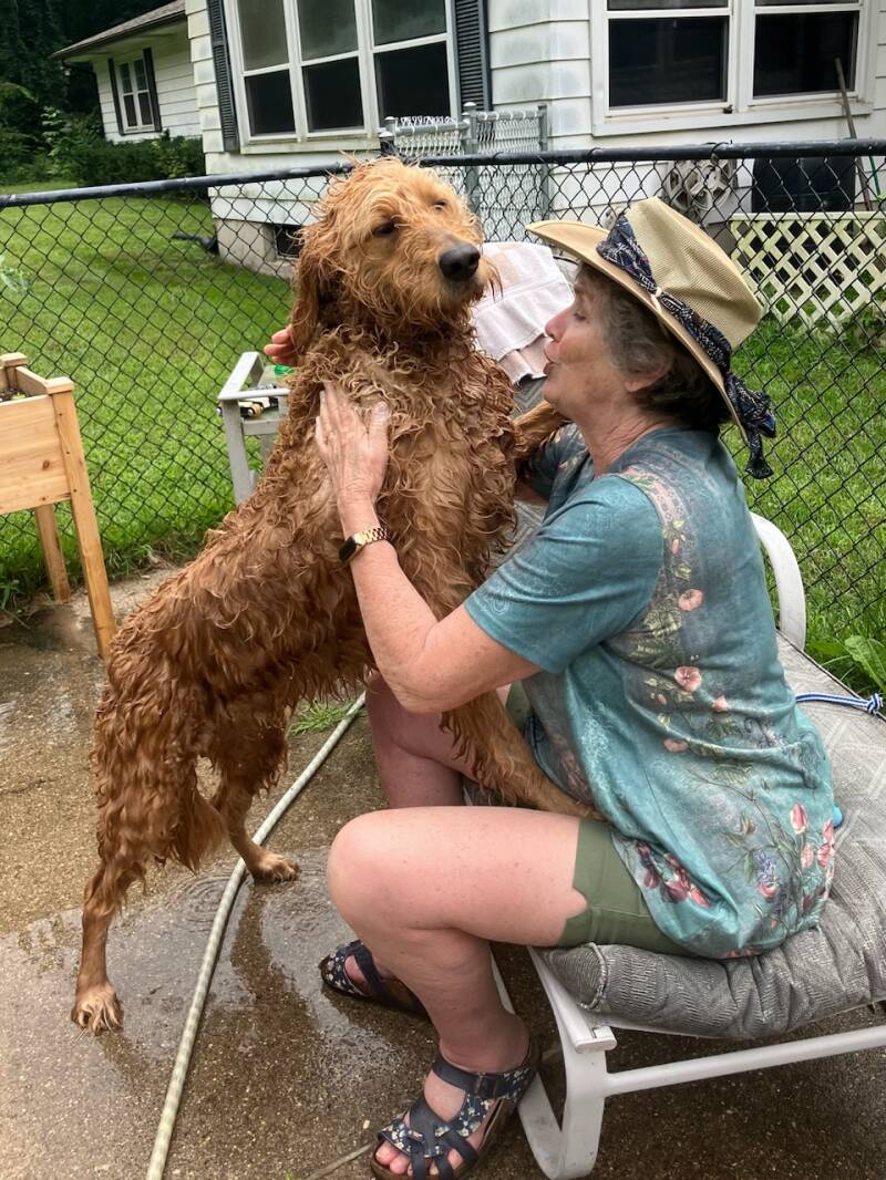 Remember that HUGE hairy dog at Rene's? Newman got a haircut! He looks SO different! And I know he's a lot cooler, as well!