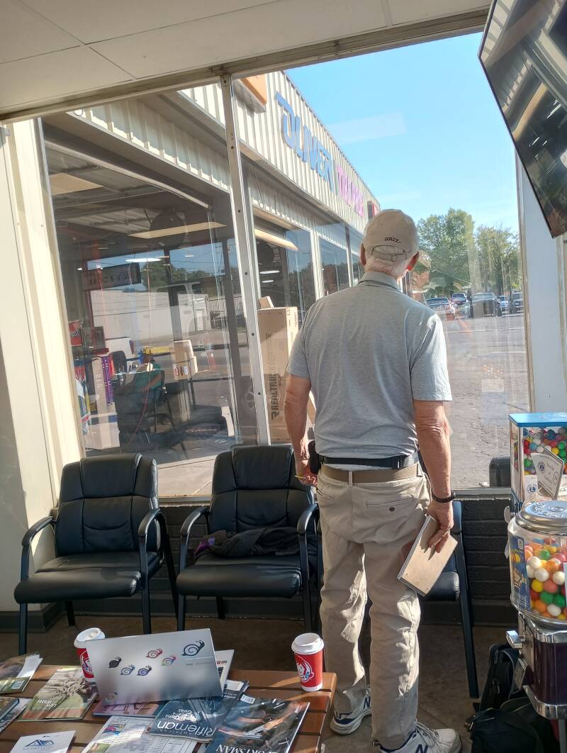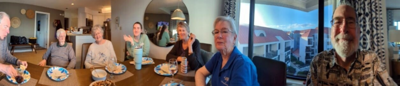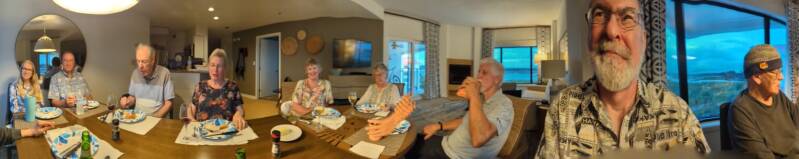 etc., and try to stay out of their way. Dave took this photo of the two of us, sitting at his table, hashing out travel plans! It seems our plans are always evolving and changing, and sometimes no one quite knows where we are or where we are going - including us! We are always SO appreciative of our friends and family helping us to stay flexible, even though it's a challenge at times. In this photo, I think Chris is looking at hotels and I am researching rental cars...but who knows? And it's before breakfast! I haven't even finished my coffee!