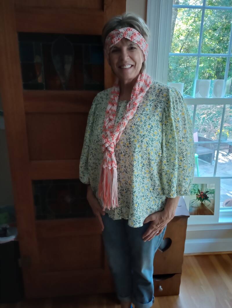 This is an ear warmer that Marion made with the pattern I shared with her.