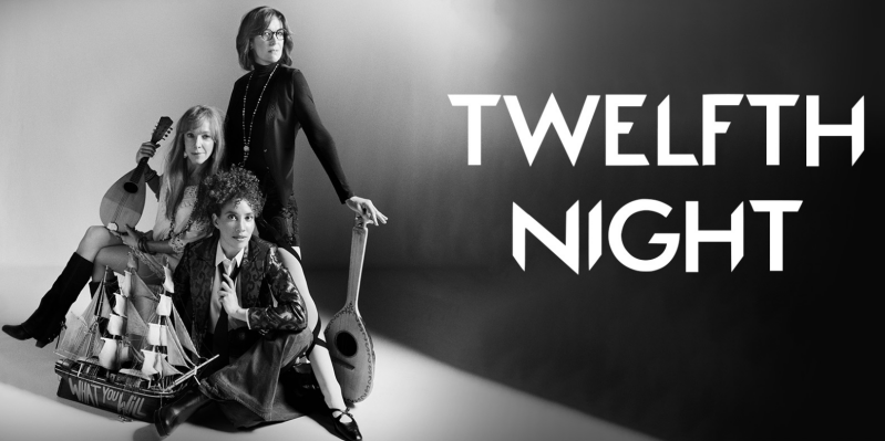 Twelfth Night is a Gilbert and Sullivan type play with mixed up identities - and they did some gender switching as well, so in this poster, you see Feste (with the lute), Malvolio (standing) and Viola dressed as Cesario. The next photo shows how well they cast Viola with her twin Sebastion who is holding the hand of Lady Olivia. The setting for this interpretation of the play was the 1970s - thus the paisley dress and the mini skirts with high boots. It was quite well done, and we all enjoyed it once we got the characters straight.