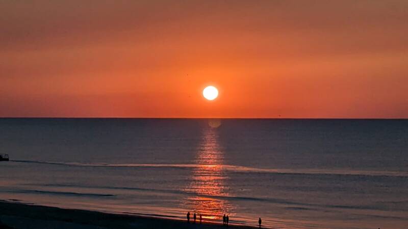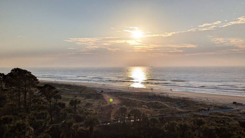 We are in what are called “The Golden Isles” - supposedly named because the Spanish explorers came here looking for gold, but which are now called “golden” because of their “astonishing beauty, mild weather, and a natural radiance”. There are four barrier islands, and Little St. Simons is one of them – a privately owned island that is one of the least developed. It is accessible only by boat (no bridges) and though it has an exclusive “lodge” you can book for accommodation, they also offer occasional day tours, and I arranged one. It was still very dark when I set out to get to the wharf, and there was a lovely full moon. Just as we got on the boat, there was a weird crepuscular ray which left a blue streak from heaven to horizon. (It’s also called an “anti-crepuscular ray” – go figure!)